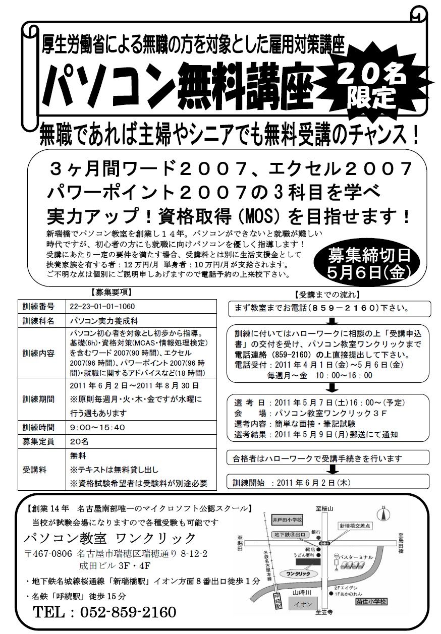 ·±ÎýÆâÍÆ¥Ñ¥½¥³¥ó½é¿´¼Ô¤òÂоݤȤ·¥ï¡¼¥É¡¢¥¨¥¯¥»¥ë¡¢¥Ñ¥ï¡¼¥Ý¥¤¥ó¥È¤ò½éÊ⤫¤é³Ø¤Ó£Í£Ï£Ó¡Ê¥ï¡¼¥É¡¦¥¨¥¯¥»¥ë¡¦¥Ñ¥ï¡¼¥Ý¥¤¥ó¥È¡Ë»ñ³Ê¼èÆÀ¤òÌܻؤ·¤Þ¤¹¡£