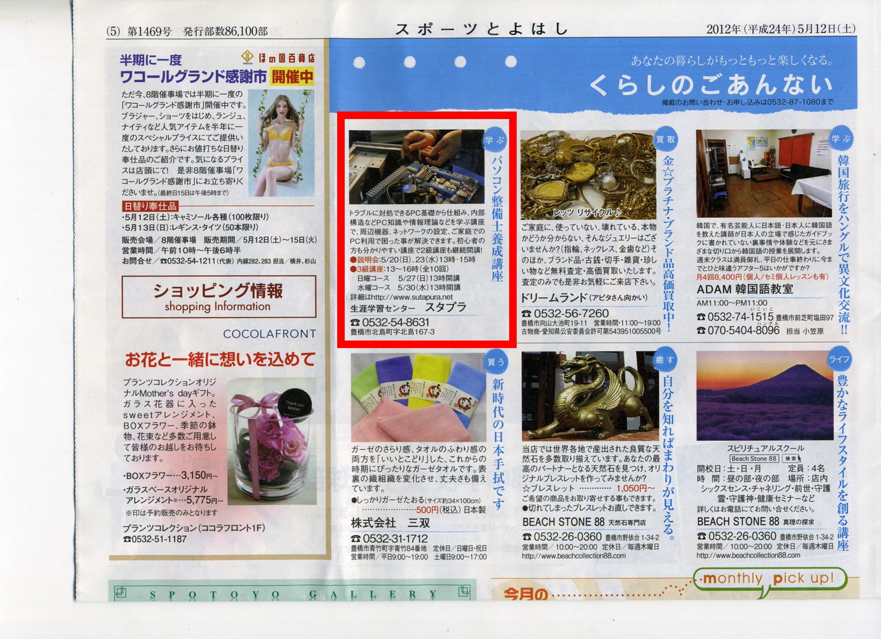˶¶¤«¤é¥Ñ¥½¥³¥óÀ°È÷¤Î½¤¹Ô¤ËÄ̤äƲ¼¤µ¤Ã¤¿Â¼ÅĤµ¤ó¤¬¡¢Ãϸµ¤Î¥Ñ¥½¥³¥ó¶µ¼¼¡ÊÀ¸³¶³Ø½¬¥»¥ó¥¿¡¼¥¹¥¿¥×¥é¡Ë¤Ç¥Ñ¥½¥³¥óÀ°È÷»Î¹ÖºÂ¤Î¹Ö»Õ¤È¤·¤Æ¥Ç¥Ó¥å¡¼¤¹¤ë¤³¤È¤Ë¤Ê¤ê¡¢ËÜÆü˶¶Ã϶è¤ÎÃæÆü¿·Ê¹¤Ë°ÆÆâ¤¬Æþ¤ê¤Þ¤·¤¿¡£