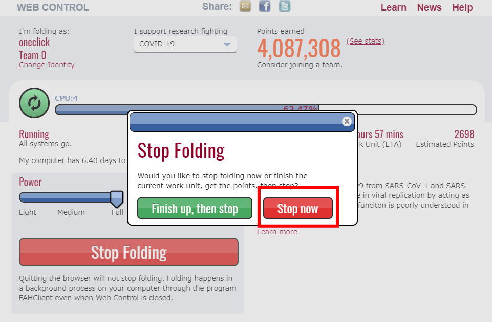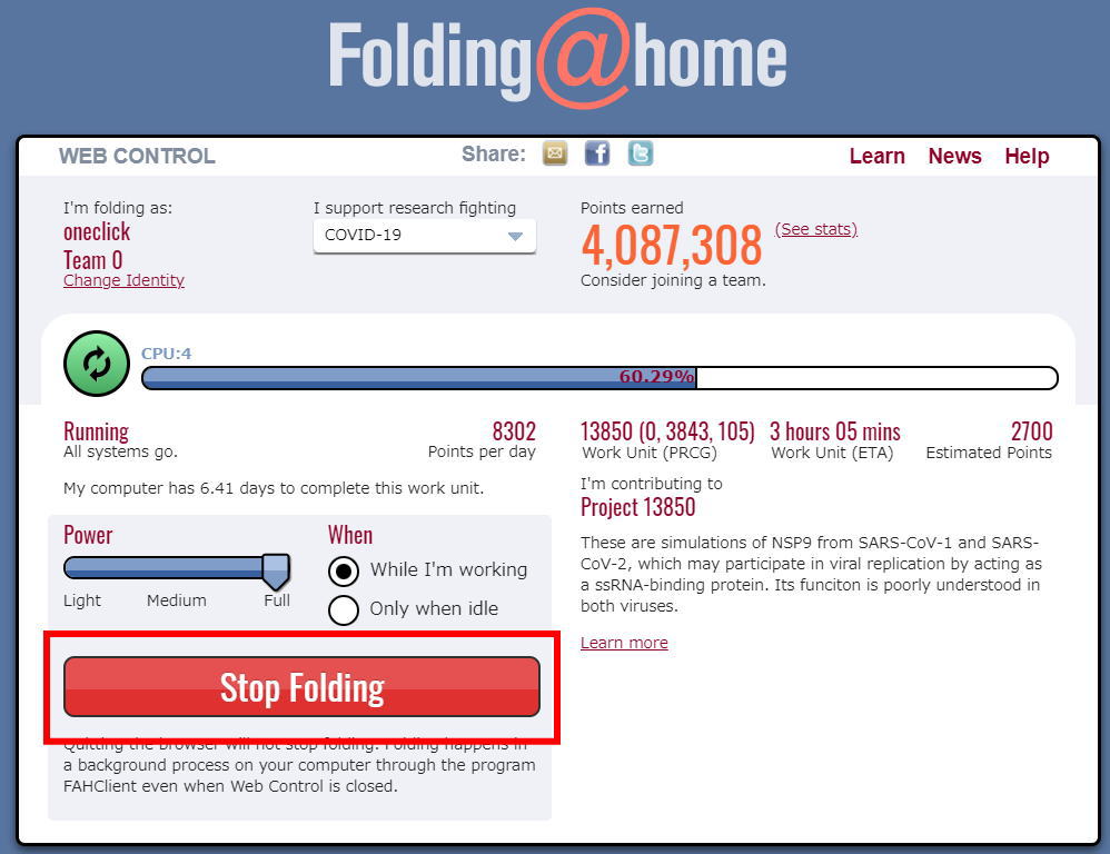 ¾¤Îºî¶È»þ¤Ë°ì»þŪ¤ËFolding@home¤òÄä»ß¤·¤¿¤¤¾ì¹ç¤Ï¡ÖStop folding¡×¤ò¥¯¥ê¥Ã¥¯¤·¤Æºî¶È¤ò»ß¤á¤ë¤³¤È¤¬¤Ç¤¤Þ¤¹¡£